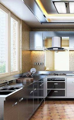 生產不銹鋼整體櫥柜時,要考慮電器、環(huán)境等因素。一起使用的抽油煙機、微波爐、烤箱,無論顏色、大小、風格,都與櫥柜相搭配、相匹配。